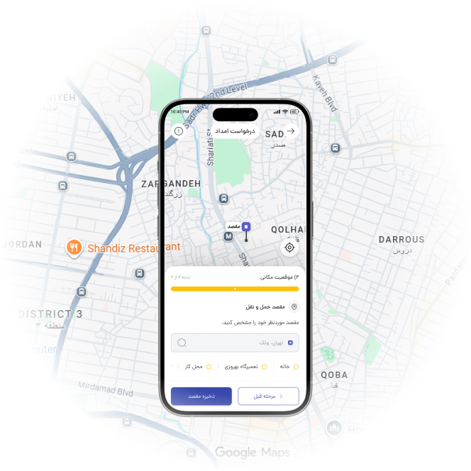 امکان انتخاب دقیق مبدا و مقصد روی نقشه و یافتن نزدیکترین خدمات در مسیر شما!